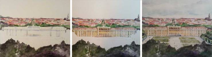 Mid-Century Modern Painting (acrylics)Foliage (watercolor and acrylics)Commissioned Summer Flowers (watercolor)Reflected Apples (oils)Succulents (watercolor)Avocado (watercolor)Shoe (oils)Commissioned Vienna Process (watercolor)Salzburg Castle (watercolor)Lady at Schönbrunn Palace (watercolor)Ruins at Schonbrunn Palace, Vienna (watercolor)Vienna Woods (watercolor)St. Charles Church, Vienna (watercolor)Flowers and Blues (watercolor)Pear (watercolor)Portrait Process (watercolor and ink)Rose (watercolor)