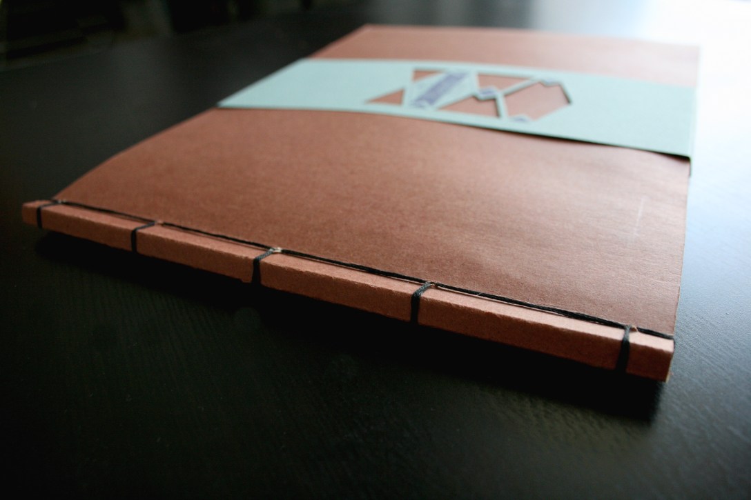 As I have been having job interviews, I have been putting together portfolio books to leave with employers. The books are about 30 pages long and contain my best work. I used Japanese stab-stitch binding to make them. I also created a little pocket on the inside cover which contains my resume and business card. Then I made a small sleeve to go around the book. I think it is all-together a neat little package. 🙂